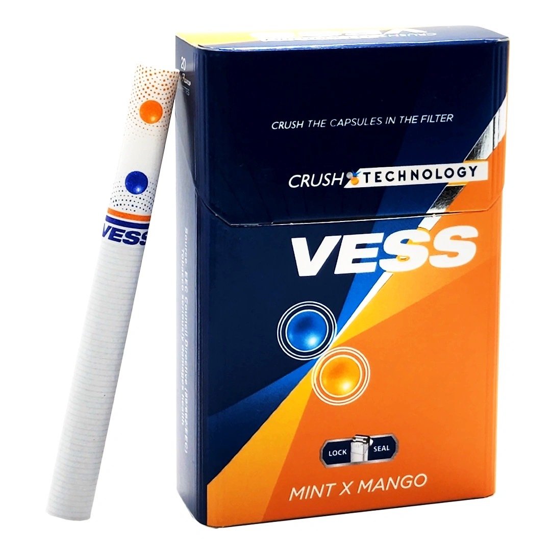 Vess Crush Mint X Mango : ใบยาคุณภาพสูง เกรดพรีเมี่ยม สูบแล้วไม่ระคายคอ มาพร้อม 2 เม็ดบีบ เย็น และ กลิ่นหอมของมะม่วง บุหรี่สายเย็น 2 เม็ดบีบให้ความเย็นสะใจ มาพร้อมกับกลิ่นหอมมะม่วงแบบเต็มๆ ให้ความรู้สึกผ่อนคลายแบบสุดๆ มี Lock Seal ช่วยรักษาความสดใหม่ของบุหรี่นานยิ่งขึ้น
